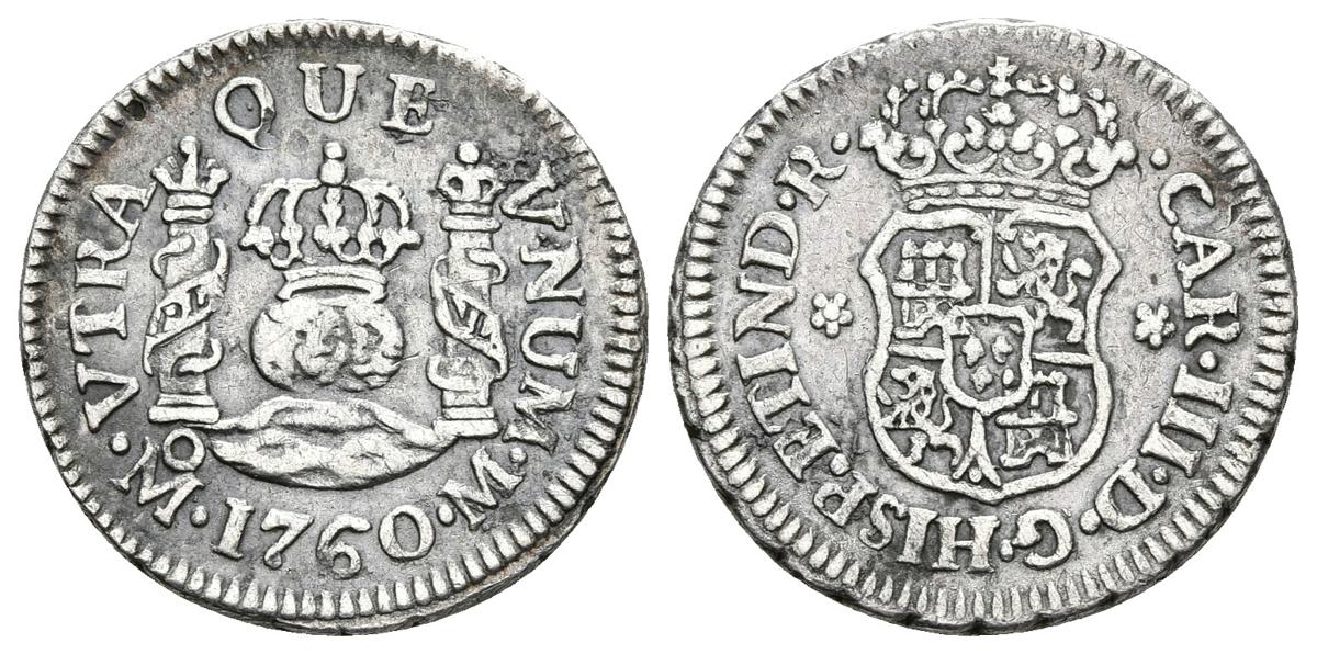 CARLOS III. 1/2 Real. 1760. México M. Cal-1749var. Ar. 1,68g. MBC+.