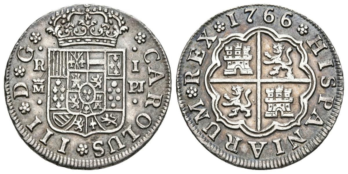 CARLOS III. 1 Real. 1766. Madrid PJ. Cal-1517. Ar. 2,87g. Ligera pátina. MBC+.