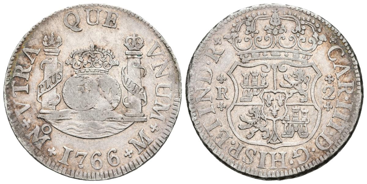 CARLOS III. 2 Reales. 1766. México M. Columnario. Cal-1331. Ar. 6,68g. MBC/MBC-.