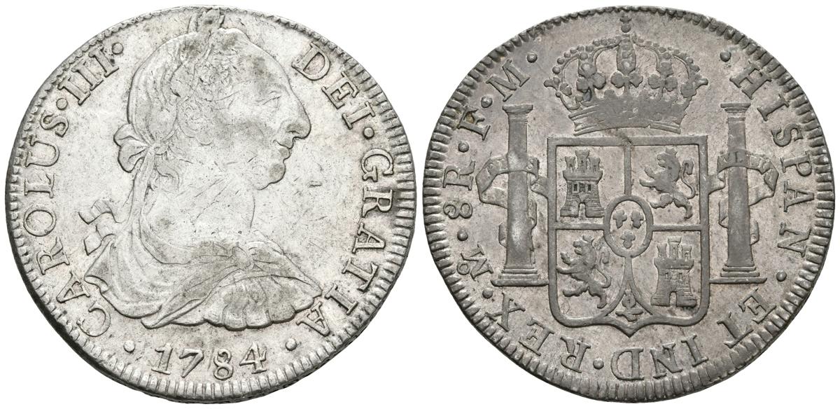 CARLOS III. 8 Reales. 1784. México FM. Cal-936. Ar. 26,90g. Bonita pátina en reverso. MBC/MBC+.