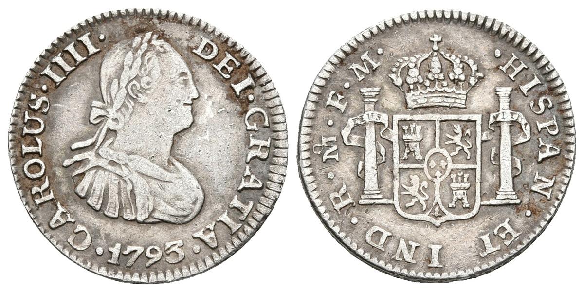 CARLOS IV. 1/2 Real. 1793. México FM. Cal-1287. Ar. 1,63g. MBC.