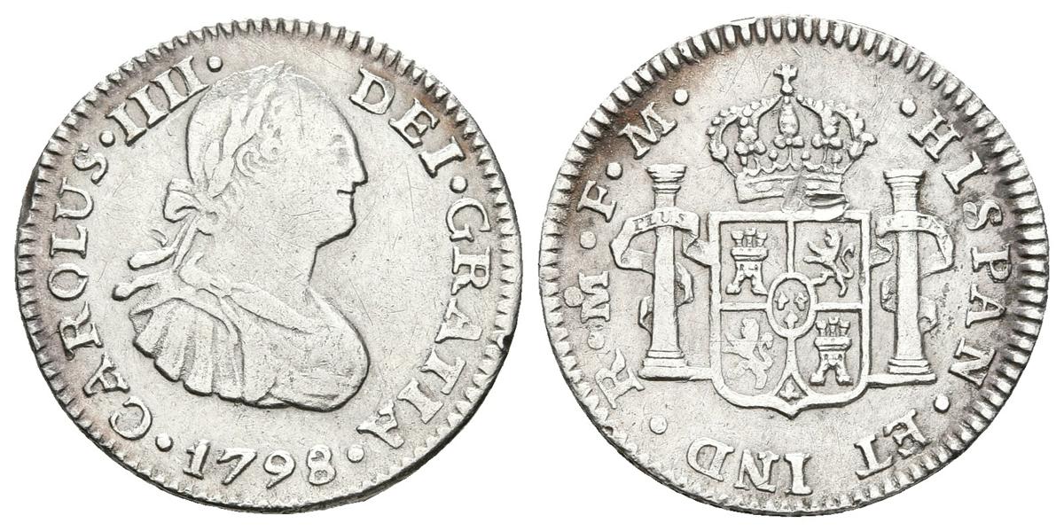 CARLOS IV. 1/2 Real. 1798. México FM. Cal-1292. Ar. 1,67g. Golpecito en reverso. MBC.