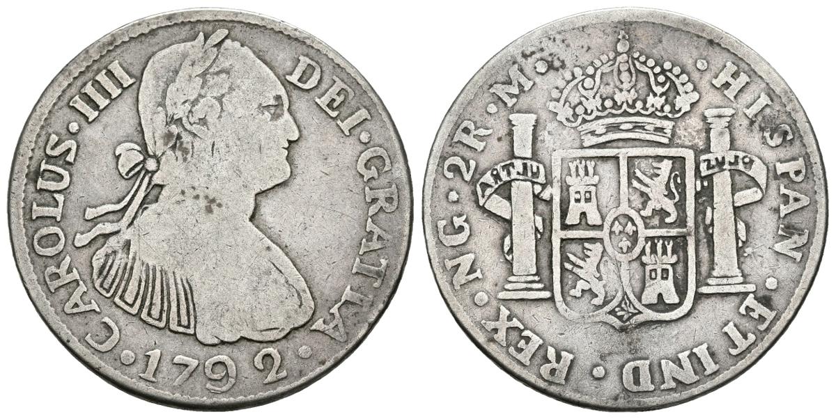 CARLOS IV. 2 Reales. 1792. Guatemala M. Cal-915. Ar. 5,73g. Falsa de época. BC+.
