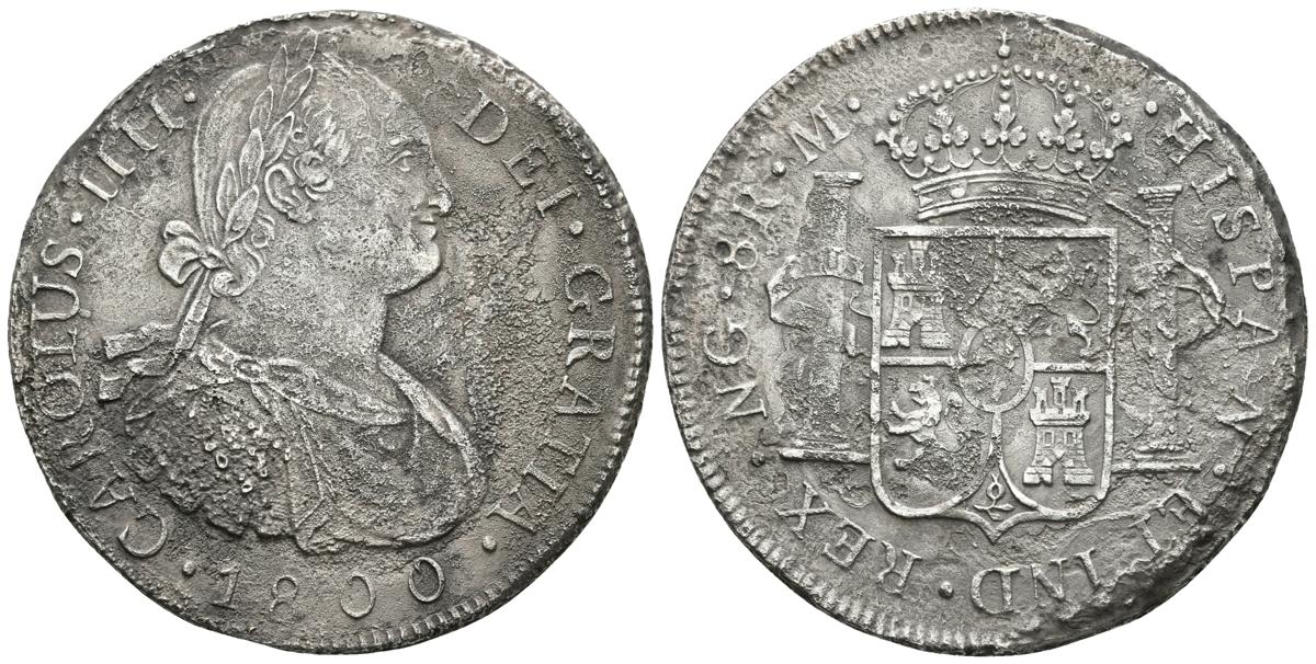 CARLOS IV. 8 Reales. 1800. Guatemala M. Cal-631. Ar. 24,91g. Oxidaciones marinas. MBC-/BC+.