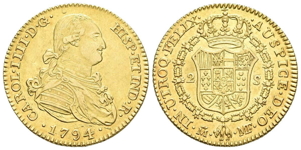 CARLOS IV. 2 Escudos. 1794. Madrid MF. Cal-328. Au. 6,77g. MBC+.