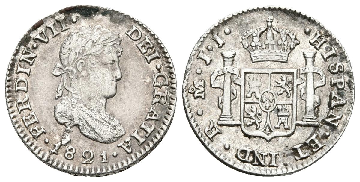 FERNANDO VII. 1/2 Real. 1821. México JJ. Cal-1353. Ar. 1,69g. MBC+.