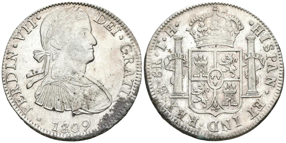FERNANDO VII. 8 Reales. 1809. México TH. Busto imaginario. Cal-539. Ar. 27,00g. EBC+/SC-. Escasa así.