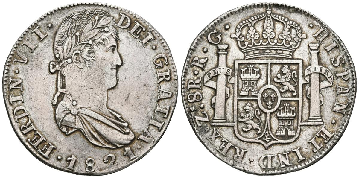 FERNANDO VII. 8 Reales. 1821. Zacatecas RG. Cal-697. Ar. 26,94g. EBC-.