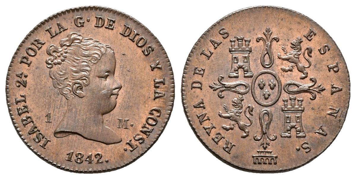 ISABEL II. 1 Maravedí. 1842. Segovia. Cal-567. Ae. 1,27g. Brillo original. SC.