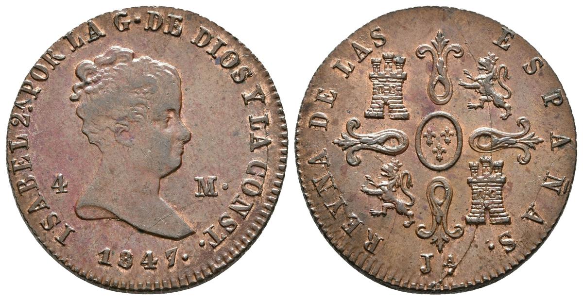 ISABEL II. 4 Maravedís. 1847. Jubia. Cal-517. Ae. 5,43g. Restos del brillo original. EBC.
