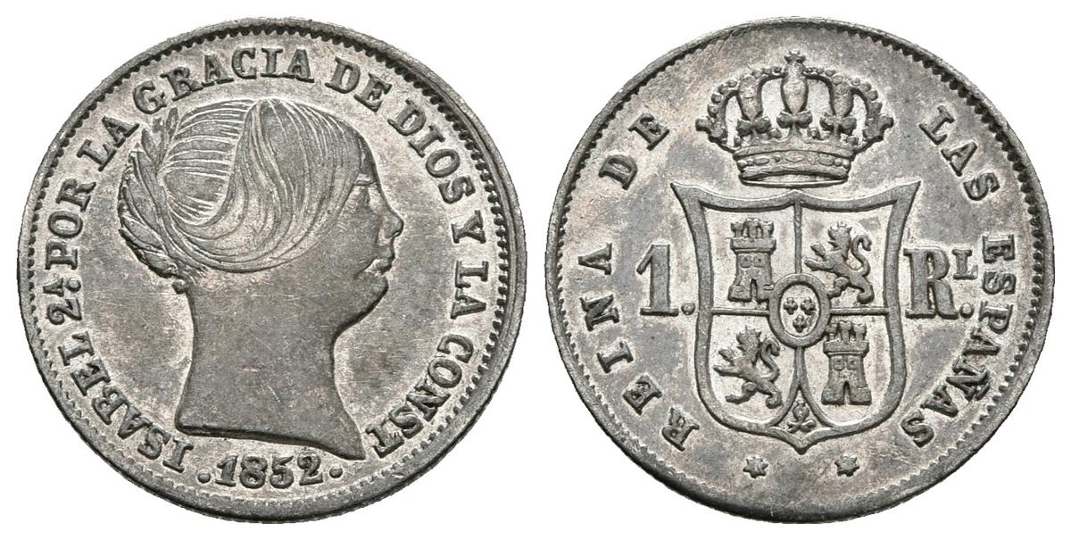 ISABEL II. 1 Real. 1852. Madrid. Cal-418. Ar. 1,31g. Bonita pátina. MBC-.