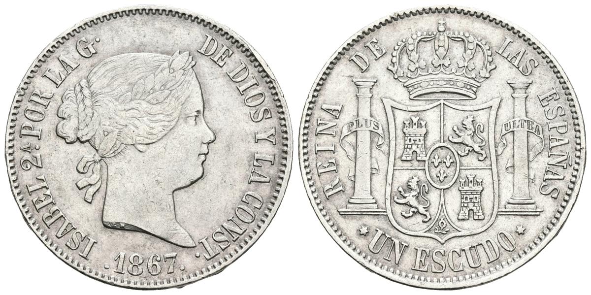 ISABEL II. 1 Escudo. 1867. Madrid. Cal-253. Ar. 12,88g. MBC+.