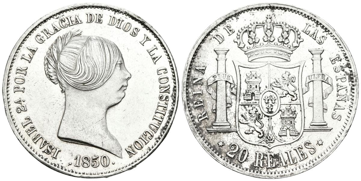 ISABEL II. 20 Reales. 1850. Madrid. Cal-171. Ar. 26,05g. Buen ejemplar. MBC+.