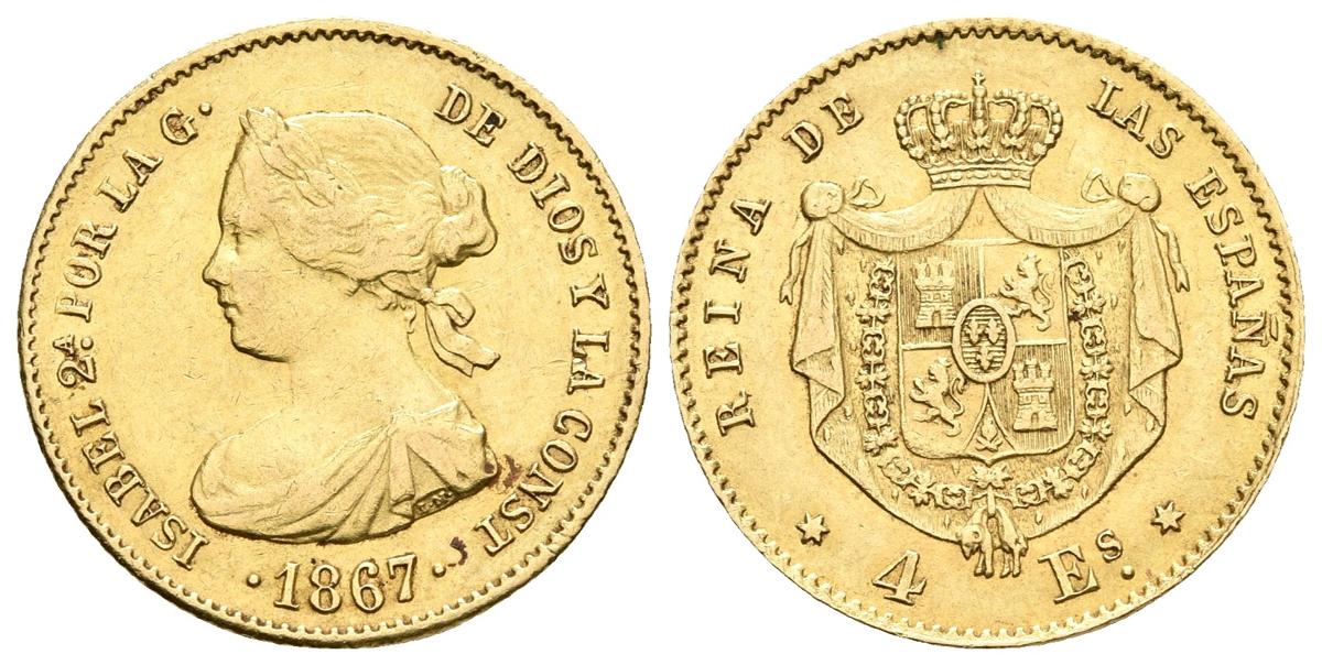 ISABEL II. 4 Escudos. 1867. Madrid. Cal-111. Au. 3,30g. MBC/MBC+.