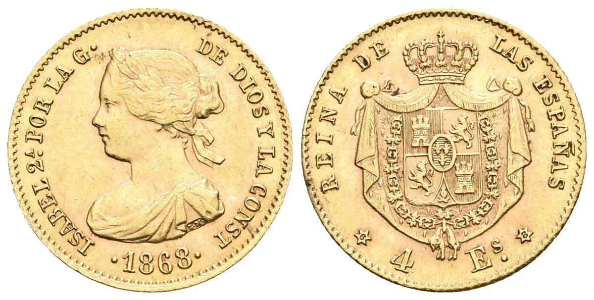 ISABEL II. 4 Escudos. 1868. Madrid. Cal-112. Au. 3,35g. MBC.