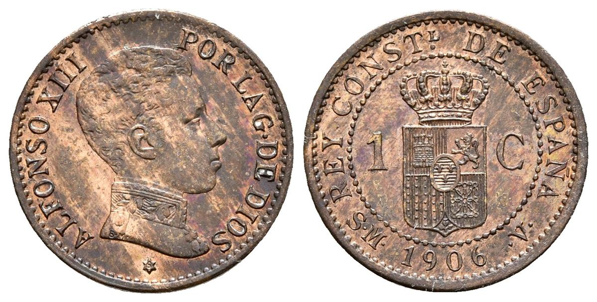ALFONSO XIII. 1 Céntimo. 1906 *6. Madrid SMV. Cal-76. Ae. 1,00g. Parte de brillo original y tono. SC-. Rara y más así.