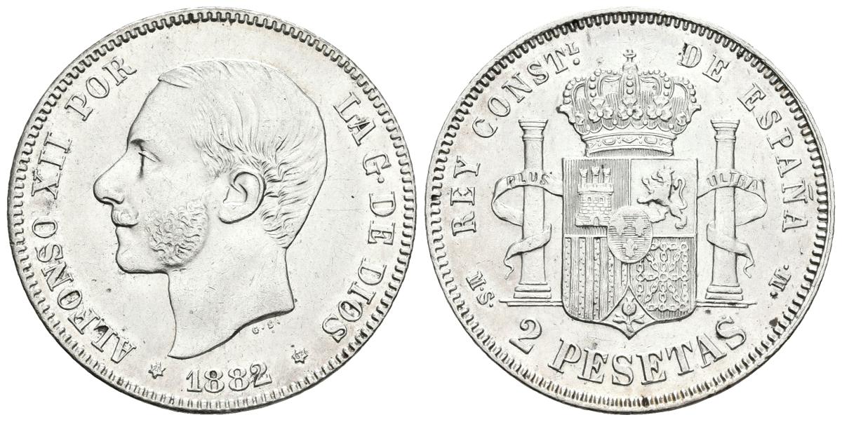 ALFONSO XII. 2 Pesetas. 1882 *18-82. Madrid MSM. Cal-51. Ar. 9,98g. EBC/EBC-.