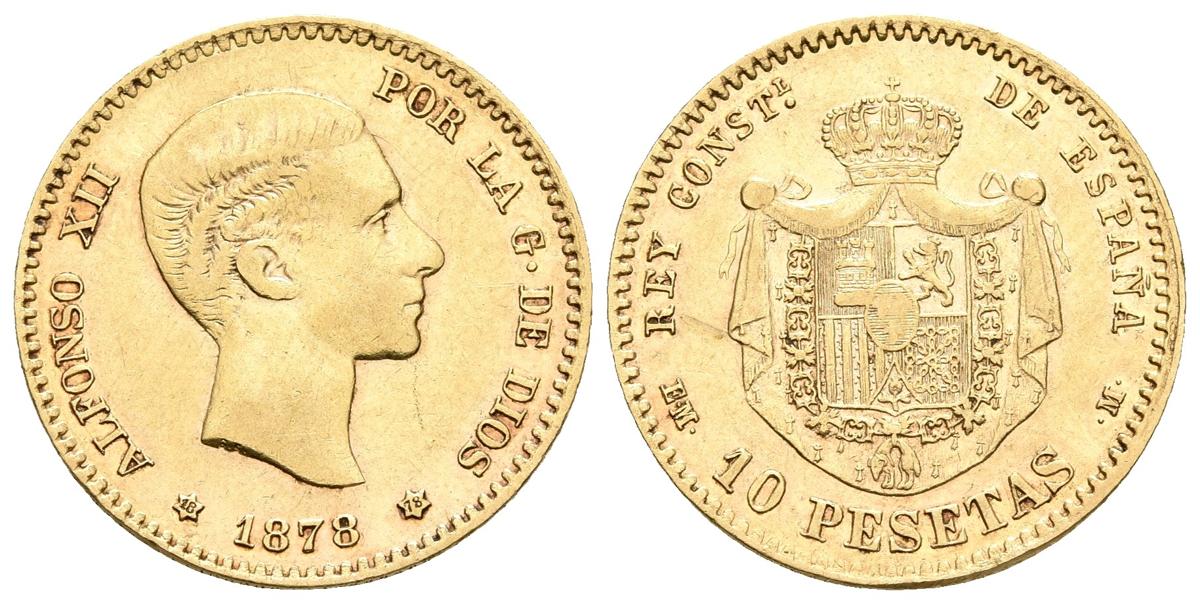 ALFONSO XII. 10 Pesetas. 1878 *18-78. Madrid EMM. Cal-23. Au. 3,21g. MBC-. Escasa.
