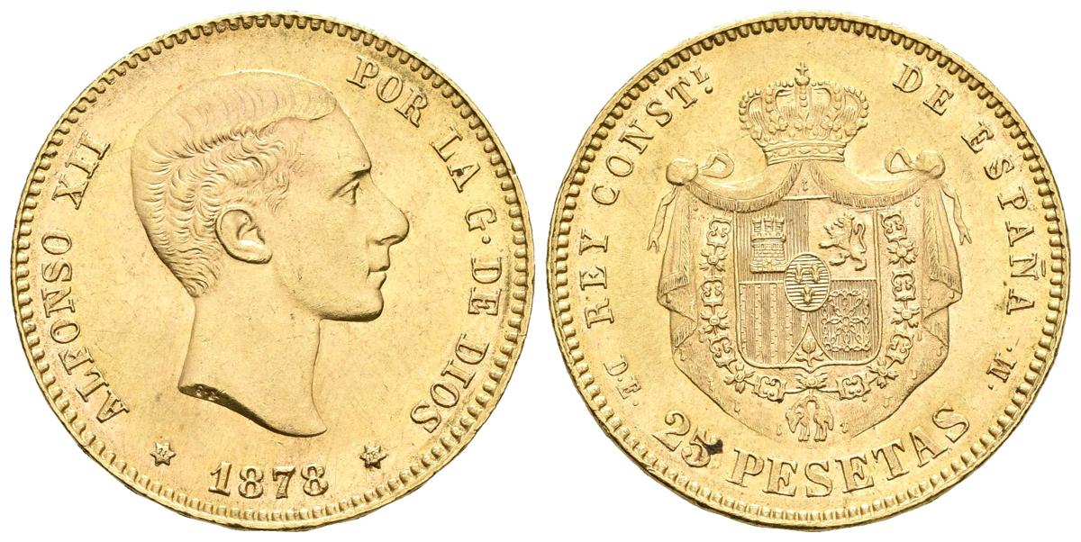 ALFONSO XII. 25 Pesetas. 1878 *18-78. Madrid DEM. Cal-6. Au. 8,07g. EBC.