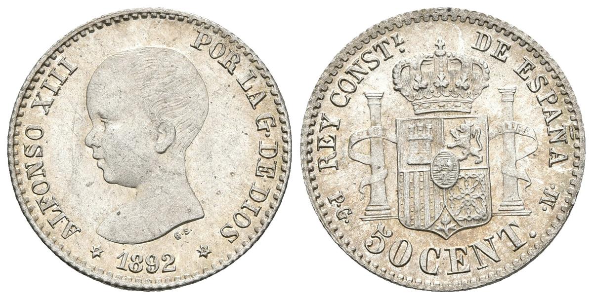 ALFONSO XIII. 50 Céntimos. 1892 *9-2. Madrid PGM. Cal-55. Ar. 2,49g. SC-.