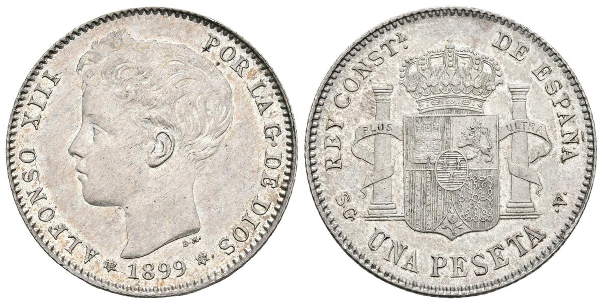ALFONSO XIII. 1 Peseta. 1899 *18-99. Madrid SGV. Cal-43. Ar. 5,08g. Preciosa pátina. EBC+.