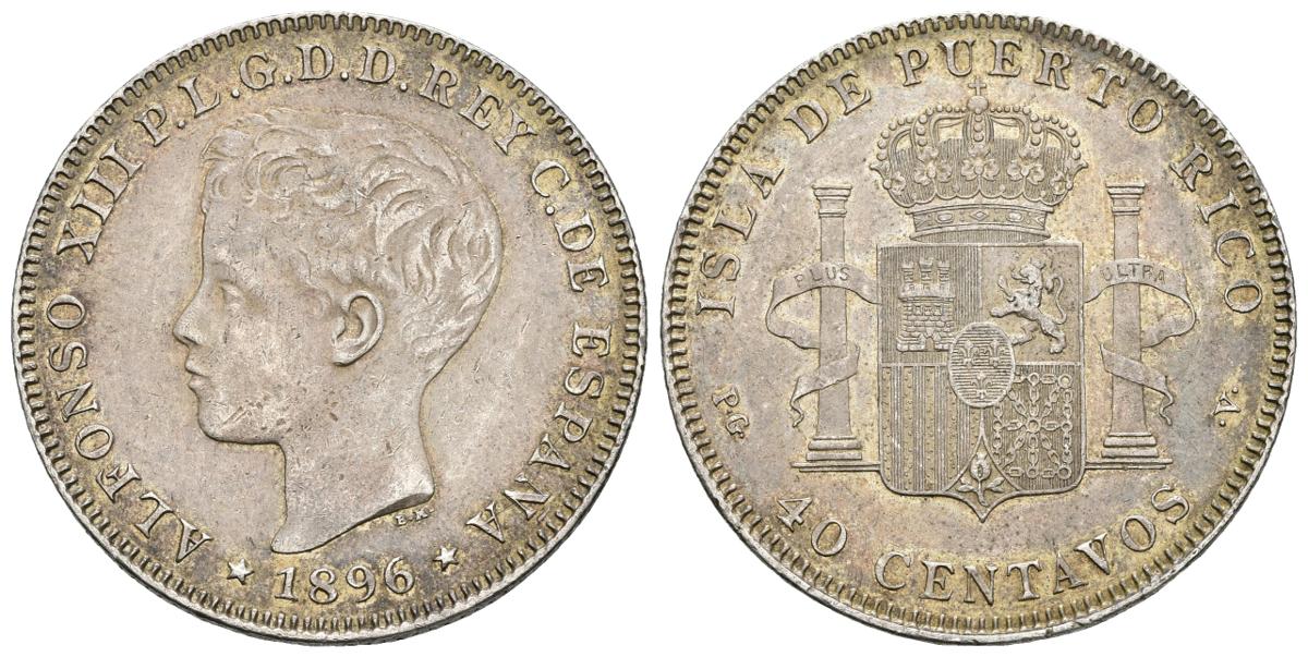 ALFONSO XIII. 40 Centavos. 1896. Puerto Rico PGV. Cal-83. Ar. 9,98g. Preciosa pátina. EBC-. Escasa.