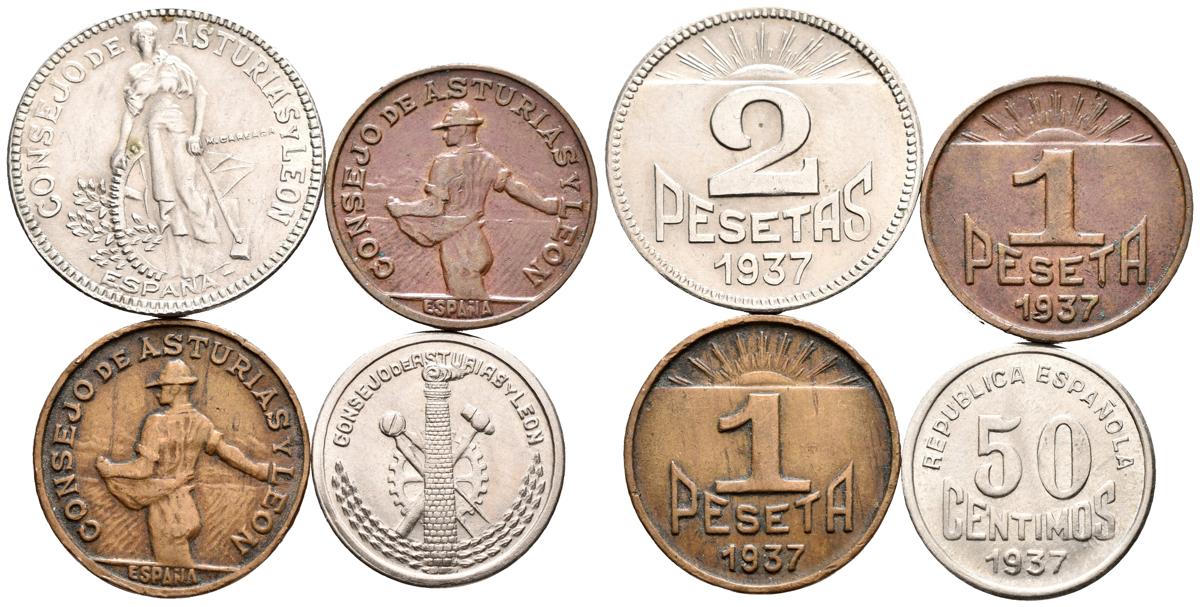ASTURIAS Y LEON. Serie completa 50 Cts, 1 Pta (dos tipos de metal) y 2 Ptas. 1937. Cal-4. Cu-Ni. MBC+/EBC.