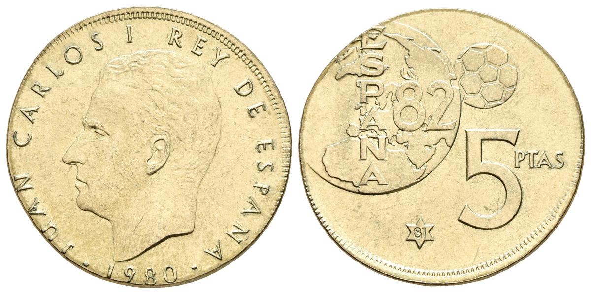 JUAN CARLOS I. 5 Pesetas. 1980 *81. Madrid. Acuñada sobre cospel de 1 Peseta. Cu. 3,45g. SC.