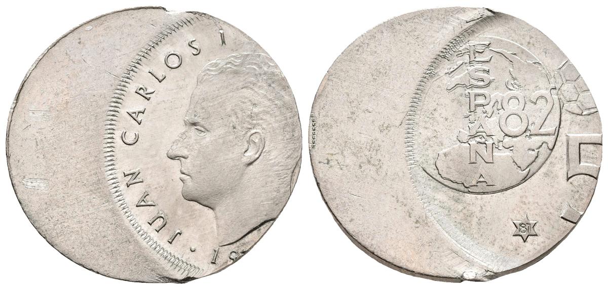 JUAN CARLOS I. 5 Pesetas. 1980 *81. Madrid. Acuñación muy desplazada. JBB-41.1. Cu-Ni. 5,44g. SC.