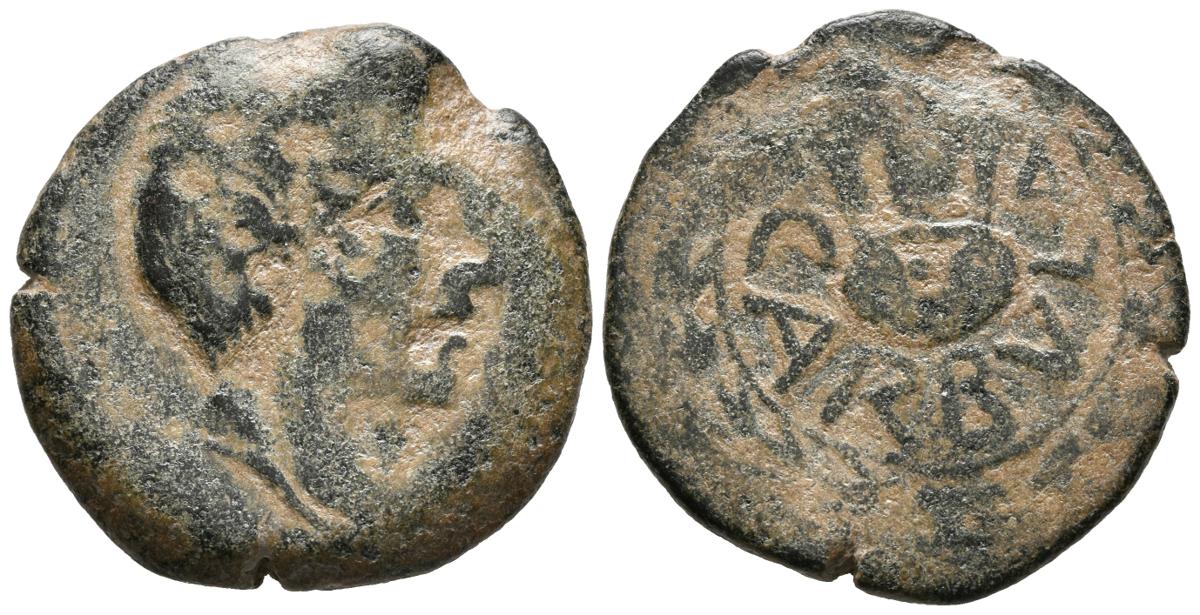CARBULA (Almodóvar del Río, Córdoba). As. (Ae. 14.63g / 29mm). 80 BC (FAB-439). Anv: Male head to the right. Rev. Lira, below legend: CARBVLA, all within laurea. Good Fine.