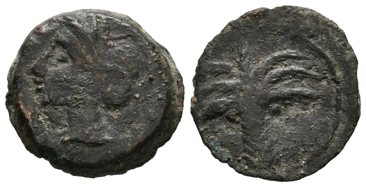 CARTAGONOVA (Cartagena, Murcia). 1/2 Tracing. (Ae. 2.70g / 16mm). 220-215 BC (FAB-516). Anv: Head of Tanit to the left. Rev: Palm tree. Almost Very Fine.