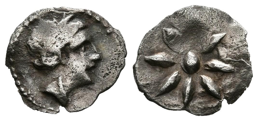 English CARTAGONOVA (Cartagena, Murcia). 1/12 Shekel. (Ar. 0.19g / 9mm). 200-190 BC (FAB-560). Anv: Female head to the right. Rev: 8-pointed star. Very Fine. Very scarce.