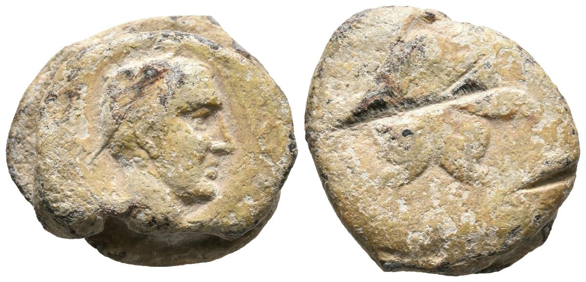 English CASTULO (Cazlona, Sevilla). Monetiform lead. (Pb. 19.41g / 23mm). (CCP-1 '). Anv: Male head diademic to the right. Rev: Bull to the right, rising above. Very Fine. Very rare.