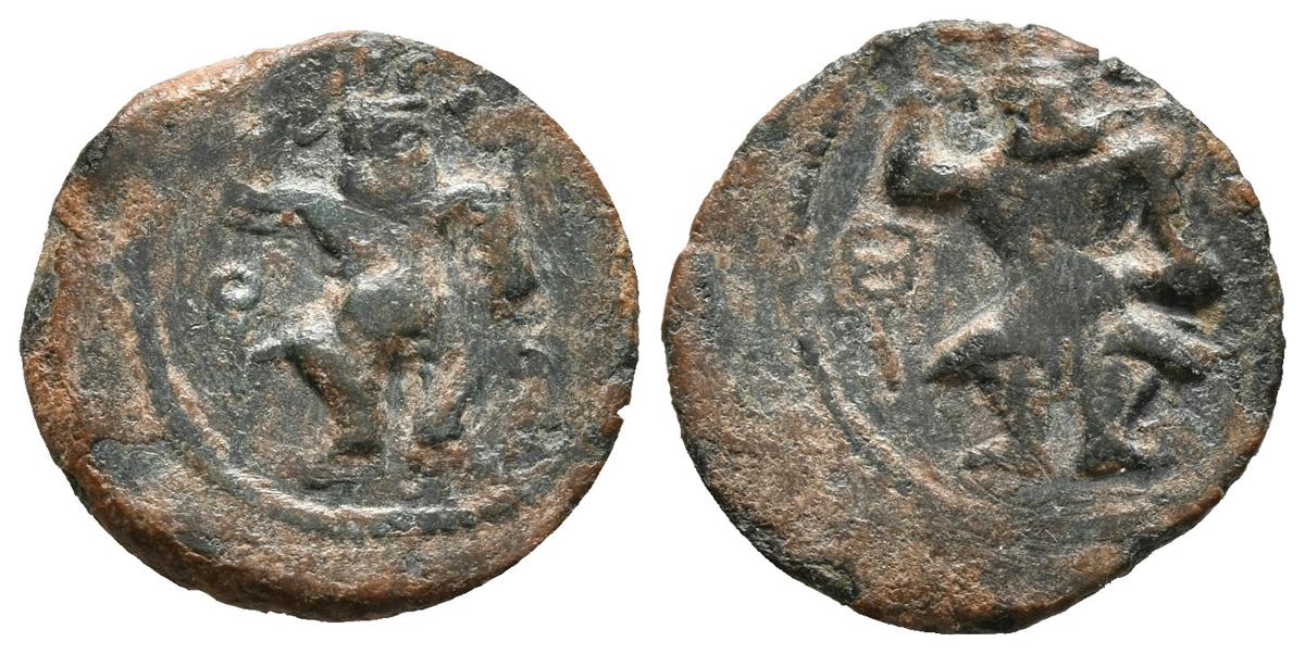 English EBUSUS (Ibiza). 1/4 Tracing. (Ae. 1.15g / 15mm). 200-100 BC (FAB-936). Anv: Bes with hammer and snake, on his left caduceus. Rev: Bes with hammer and snake, on his left caduceus. Good Fine.