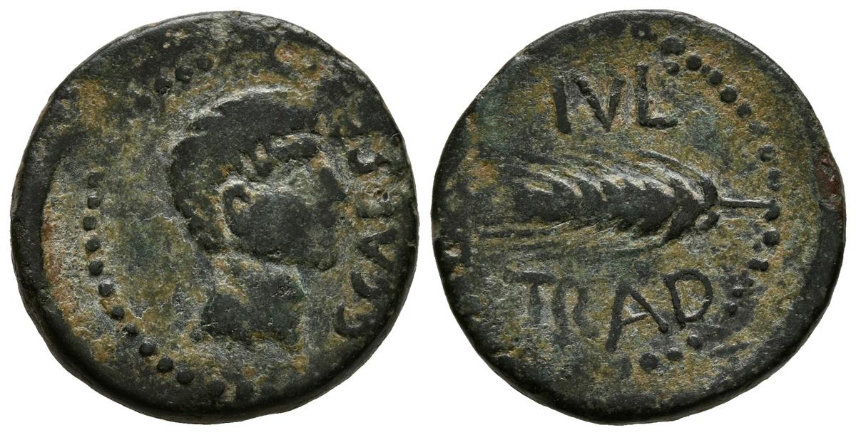 IULIA TRANSLATOR (Algeciras, Cádiz). Semis. (Ae. 5.55g / 20mm). 27 BC-14 AD (FAB-1618). Anv: Head of Lucio, in front legend: L CAESAR. Rev: Spike on the left, around legend: IVL TRAD. Good Fine. Scarce