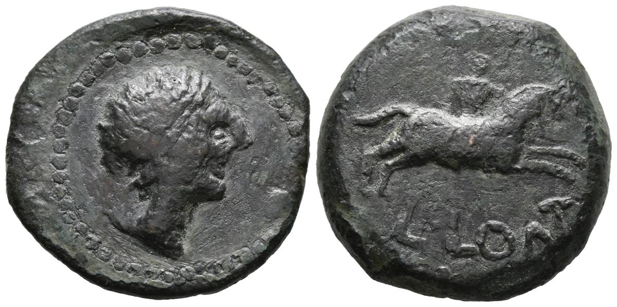 OLONT (Aznalcázar, Sevilla). As. (Ae. 14.83g / 28mm). 50-20 BC (FAB-1877 var). Anv: Male head to the right. Rev: Rider on the right, below legend: L LONT. Almost Very Fine. Scarce