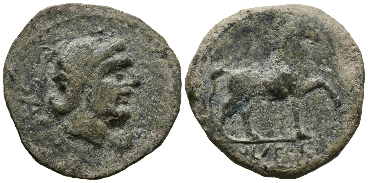SACILI (Pedro Abad, Córdoba). Semis. (Ae. 11.66g / 29mm). 120-50 BC (FAB-2020). Anv: Male head to right, behind legend: SACILI. Rev: Horse to the right on the line. Almost Very Fine.