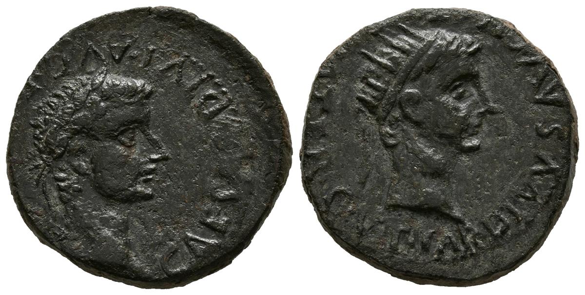TARRACO (Tarragona). As. (Ae. 9.17g / 23mm). 14-36 AD (FAB-2373). Anv: Laureate head of Tiberius on the right, around legend: TI CAESAR DIVI AVG AVGVSTVS. Rev: Radiated head of Augustus to the right, around legend: DIVVS AVGVSTVS PATER CVTTAR. Good Very Fine.