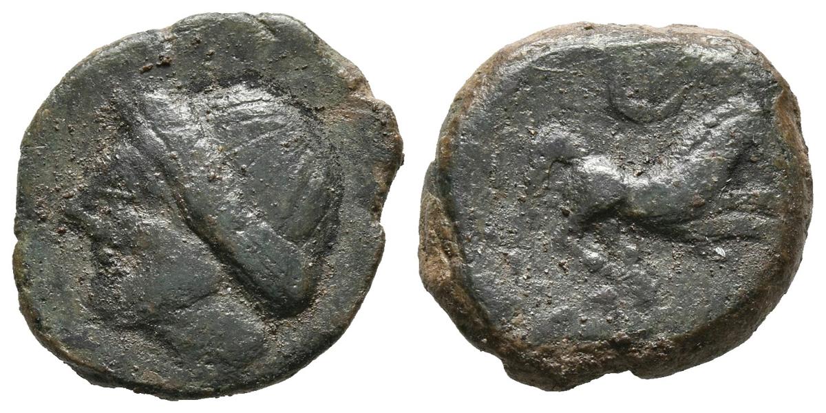 UNCERTAIN OF THE PENINSULA. Quadrant. (Ae. 3.09g / 16mm). (Villaronga 428/1). Anv: Diademic female head on the left. Rev: Horse to the right, rising above. Almost Very Fine. Rare