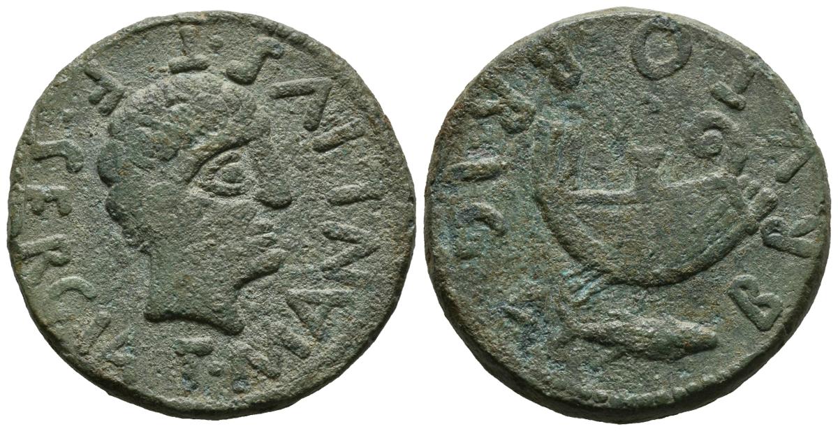 BRUTOBRIGA (between Santarem and Abrantes, Portugal). As. (Ae. 14.99g / 29mm). 100-50 BC (FAB-296). Anv: Male head to the right, around legend: T MANLIVS TF SERGIA. Rev: Ship, under tuna on the right, around legend: BRVTOBRIGA. Good Very Fine. Nice specimen, rare and more like that.