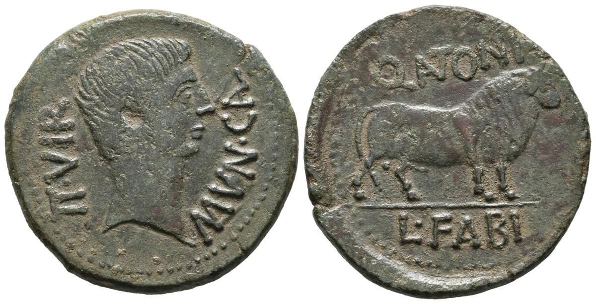 CALAGURRIS (Calahorra, La Rioja). As. (Ae. 11.83g / 30mm). 27 BC-14 AD (FAB-410). Anv: Head of Augustus to the right, around legend: II VIR MVN CAL. Rev: Bull to the right on the line, above the legend: Q ANTONI, below the line: L FABI. Very Fine.