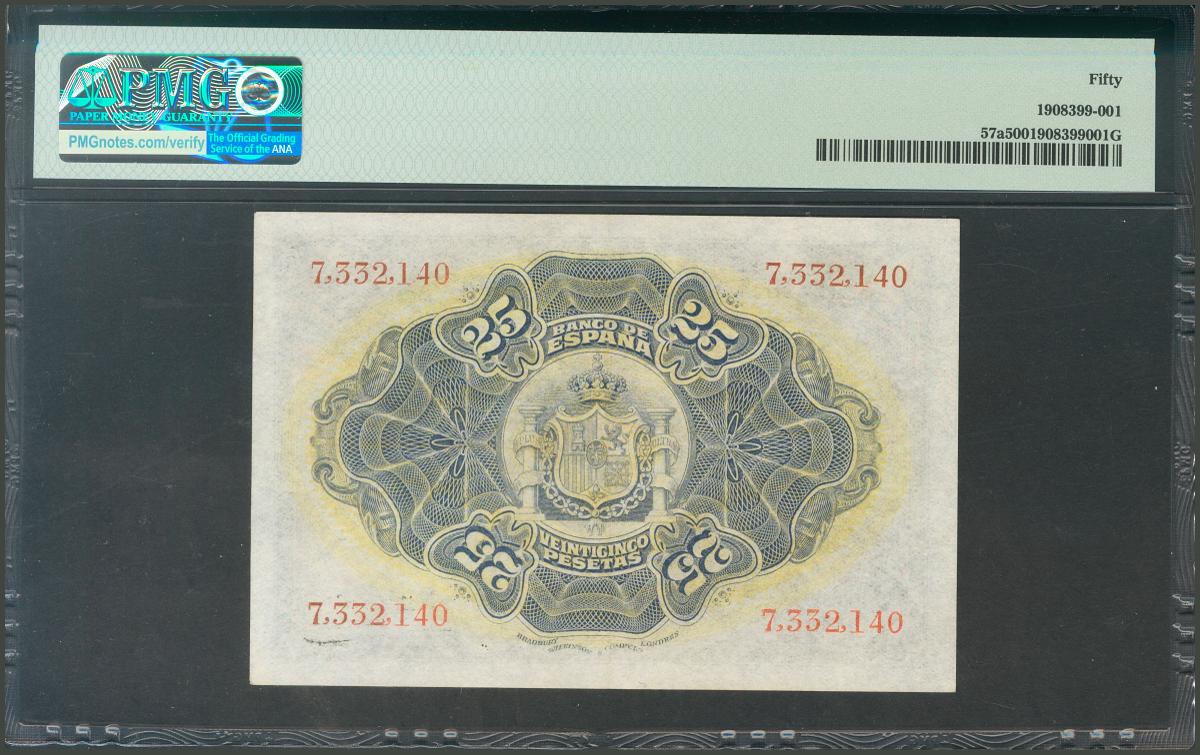 25 Pesetas. September 24, 1906. Without series. (Edifil 2017: 314). Good Extremely Fine. Packaged PMG50.