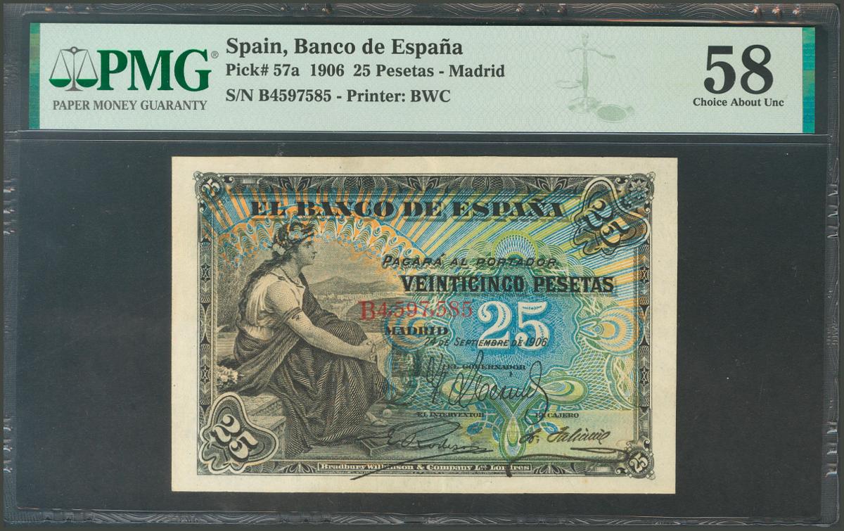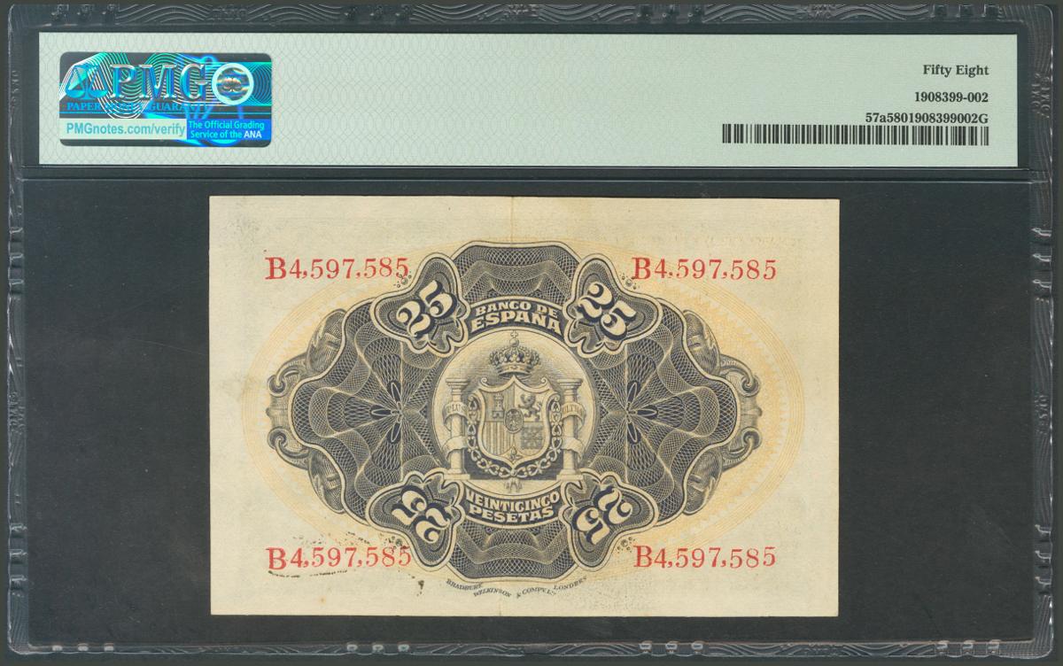 English 25 Pesetas. September 24, 1906. Series B. (Edifil 2017: 314a). Good Extremely Fine. PMG58 package.