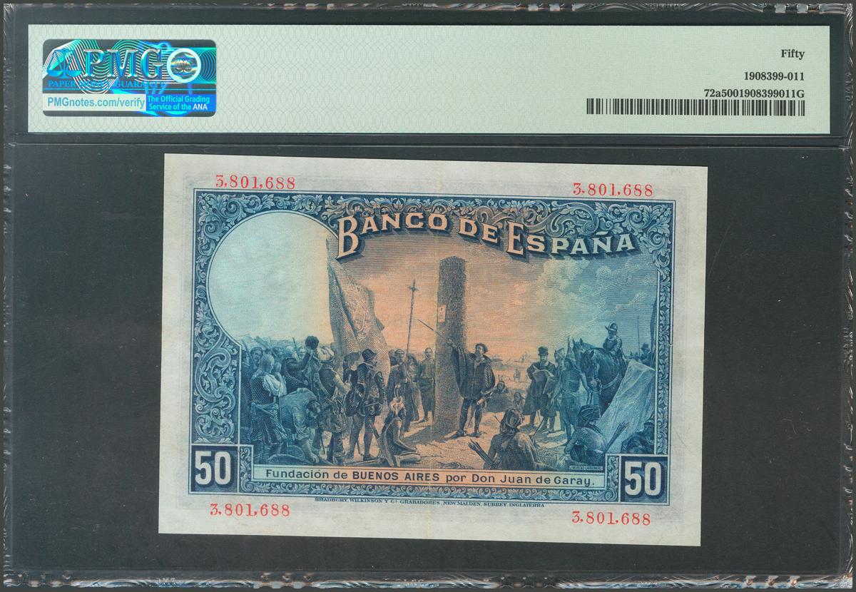 50 Pesetas. May 17, 1927. Without series. (Edifil 2017: 326). Extremely Fine. Packaged PMG50.