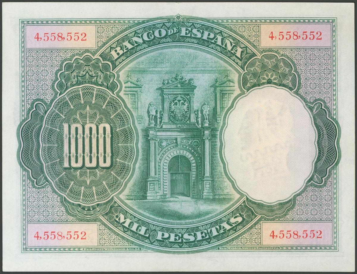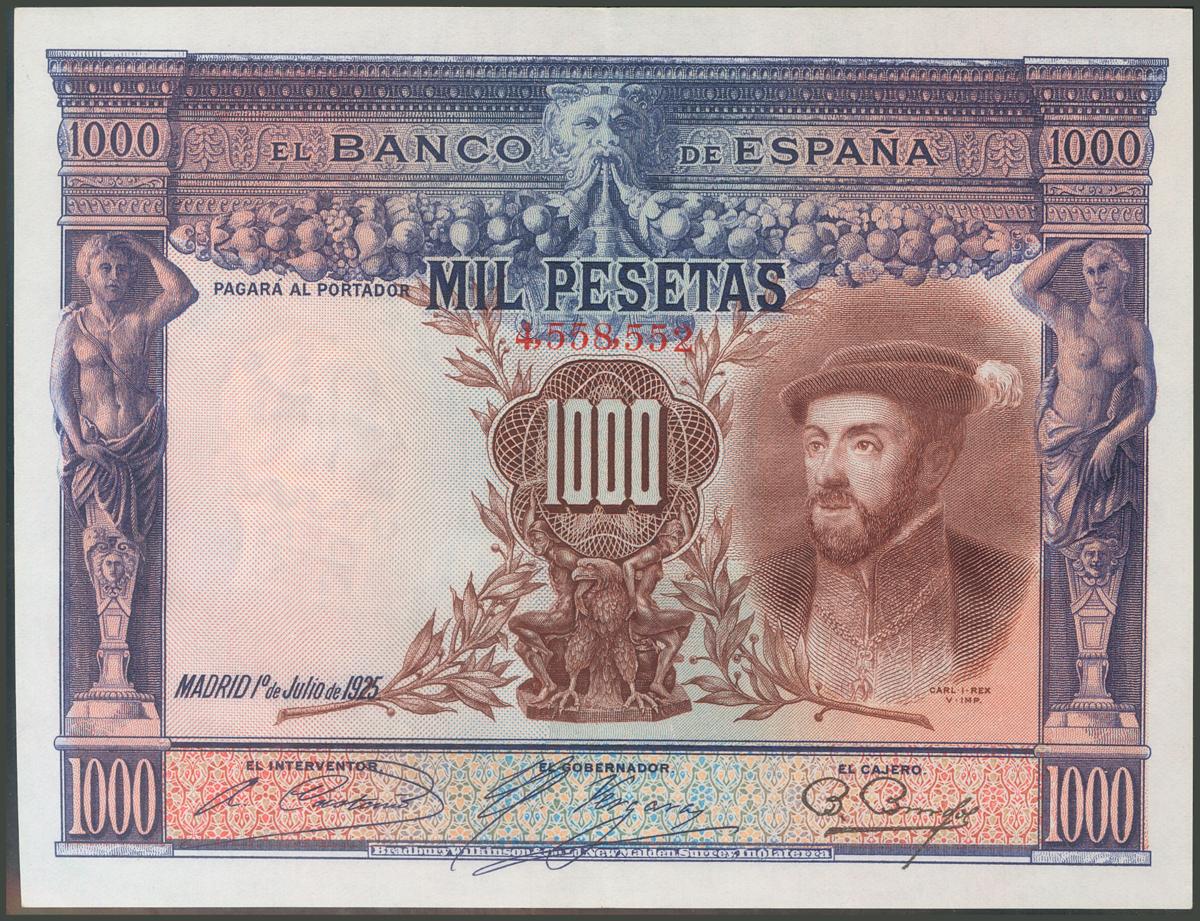 English 1000 Pesetas. July 1, 1925. (Edifil 2017: 351). It retains all its original size. Good Extremely Fine.