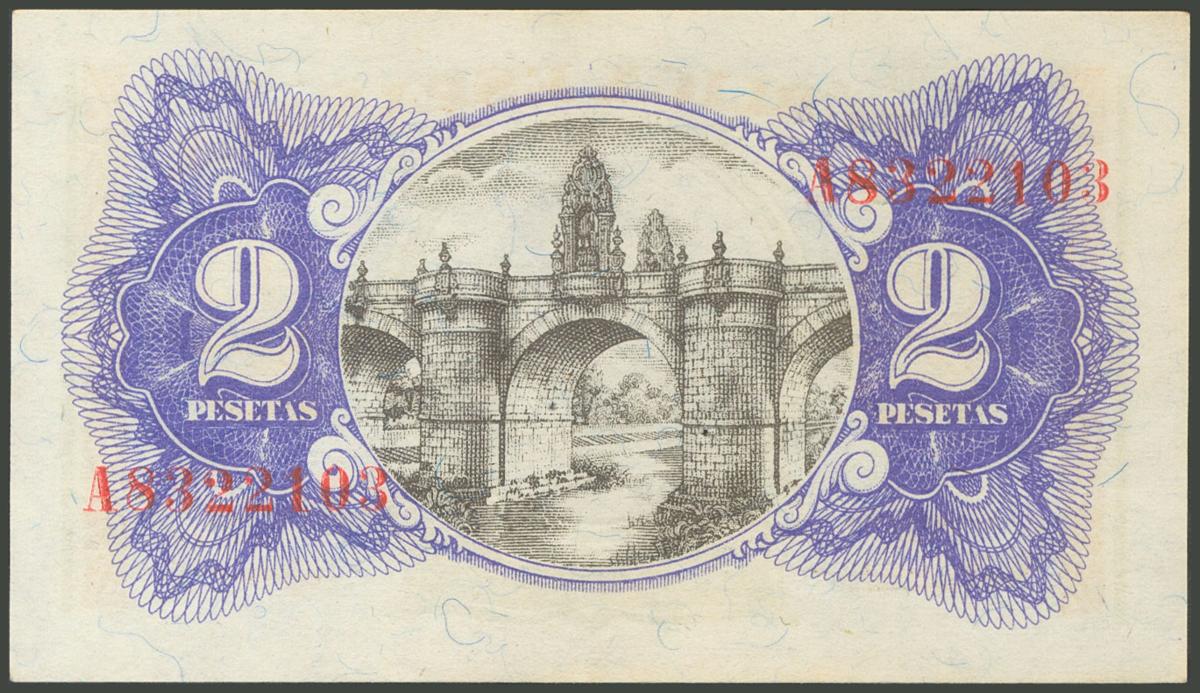 2 Pesetas. 1937. Series A. (Edifil 2017: 393). Dots of staple. Good Extremely Fine.