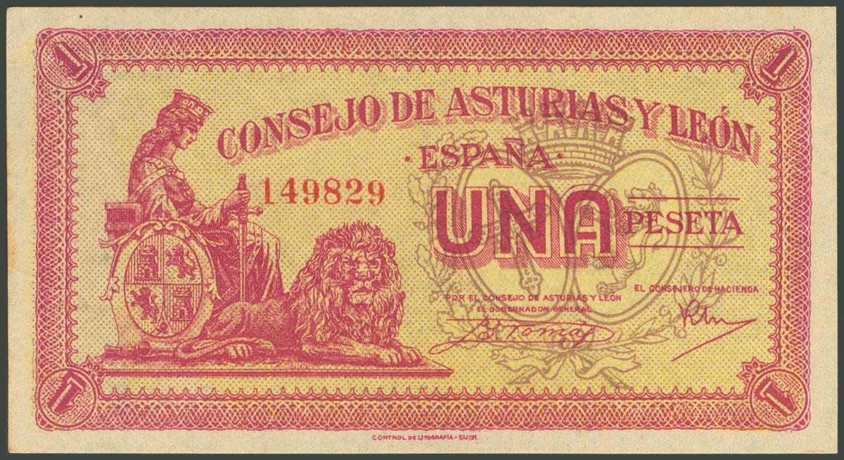1 peseta. 1937. Asturias and León. (Edifil 2017: 397). Original sizing. Almost Uncirculated.