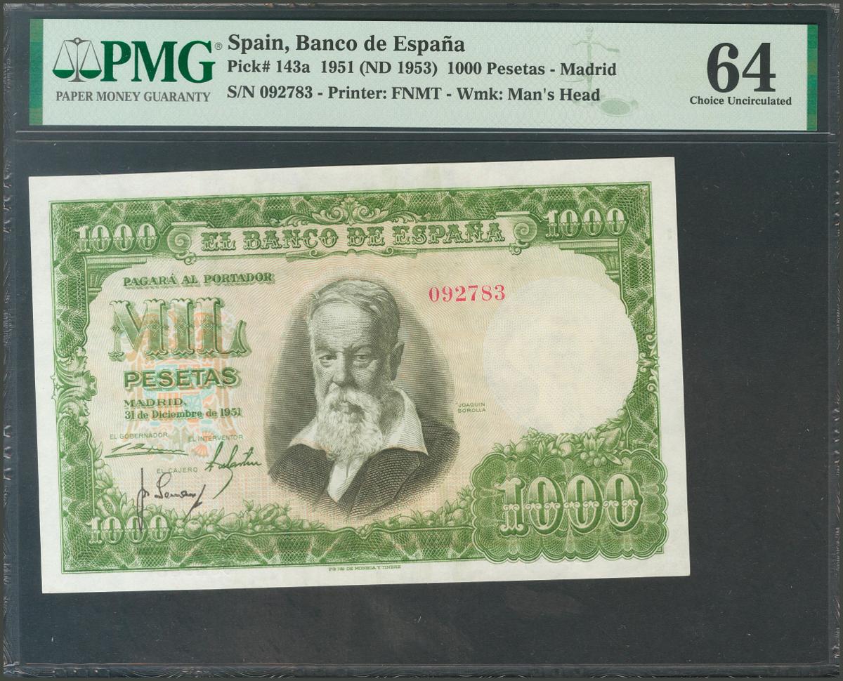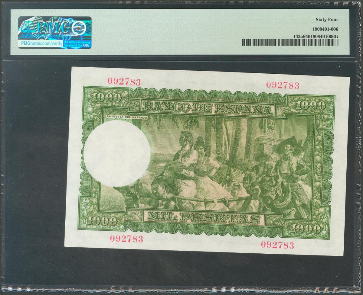 1000 Pesetas. December 31, 1951. Without series. (Edifil 2017: 463). Uncirculated. PMG64 package.