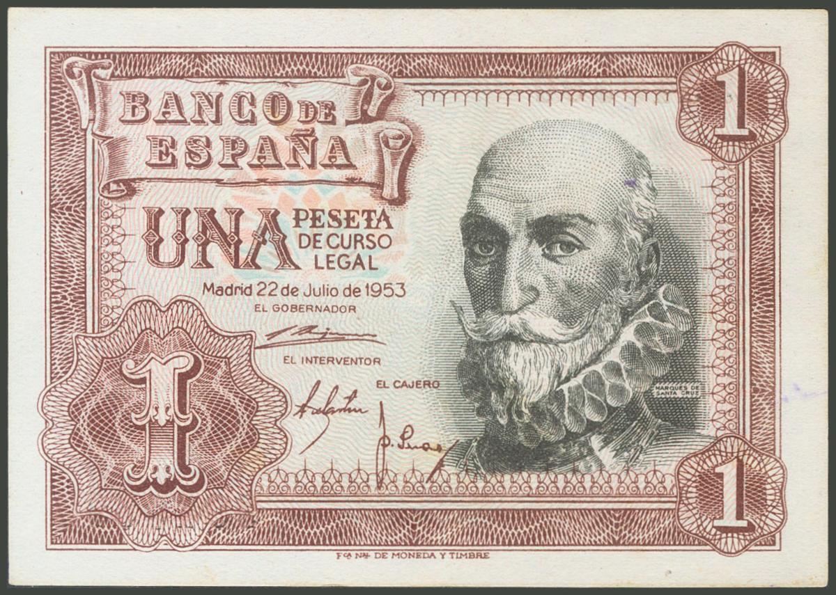 English 1 peseta. July 22, 1953. Without series. (Edifil 2017: 465). Original sizing. Good Extremely Fine.