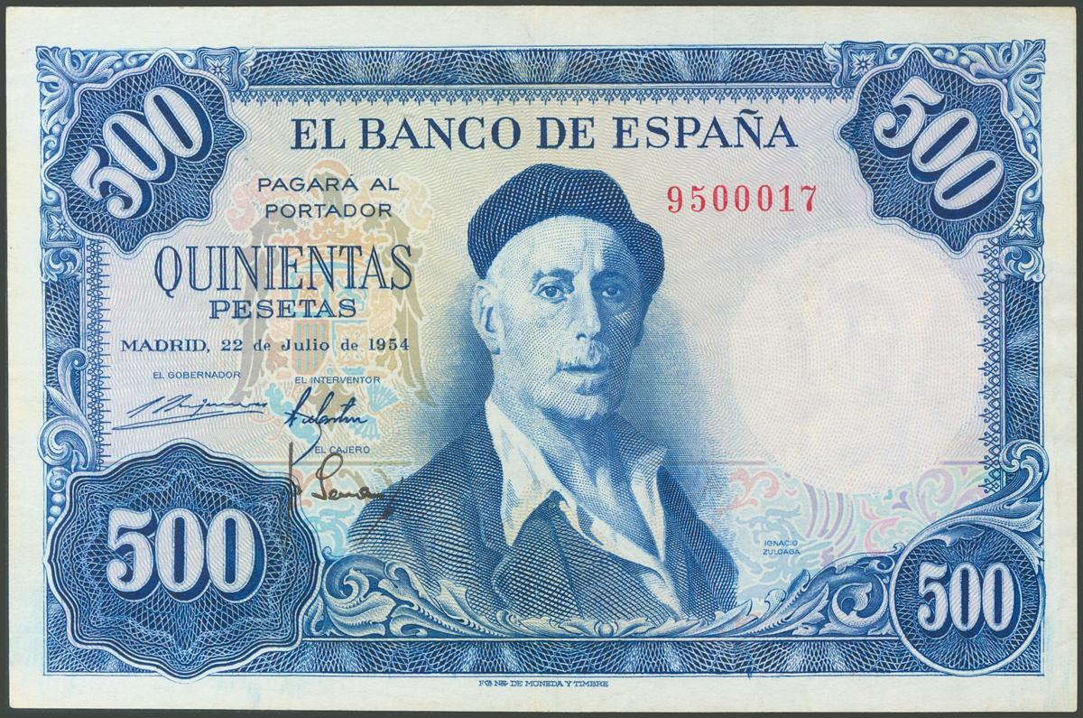 500 pesetas. July 22, 1954. Without series. (Edifil 2017: 468). Very Fine.